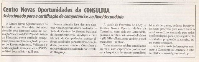 Centro Novas Oportunidades da Consultua selecionado para certificar competências de nível secundário