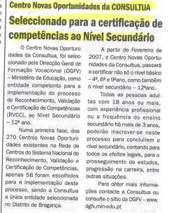 Centro de RVCC em Mirandela, na Consultua