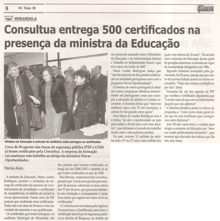 Consultua entrega 500 certificados na presença da Ministra da Educação