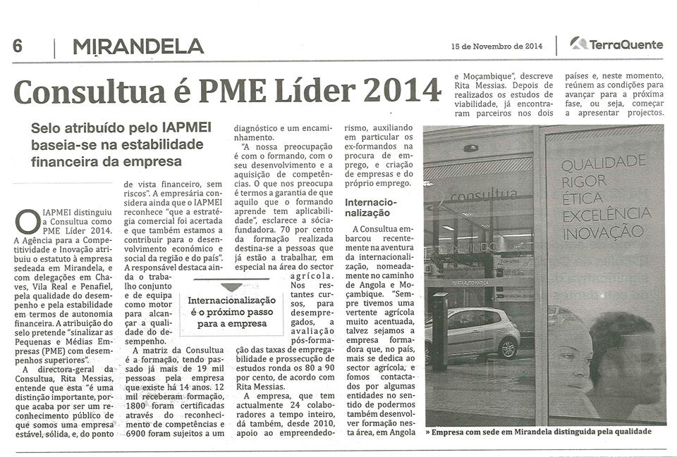 Consultua é PME Líder 2014